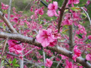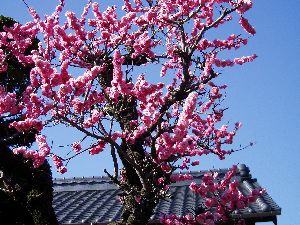 ![]() 赤紫の桃の花 ほんとうに様々な色があります |